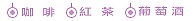 葡萄酒 Wine 紅茶  Tea 咖啡  Coffee