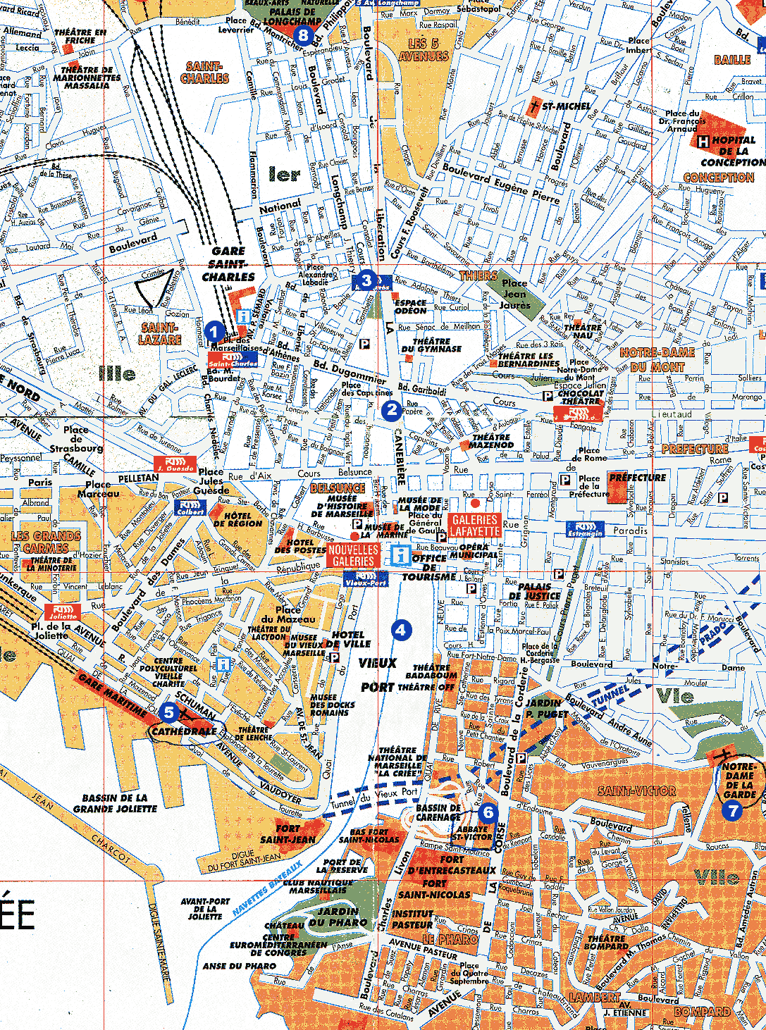 本地圖可在"馬賽旅客服務中心"和〝拉法葉百貨公司〞索取